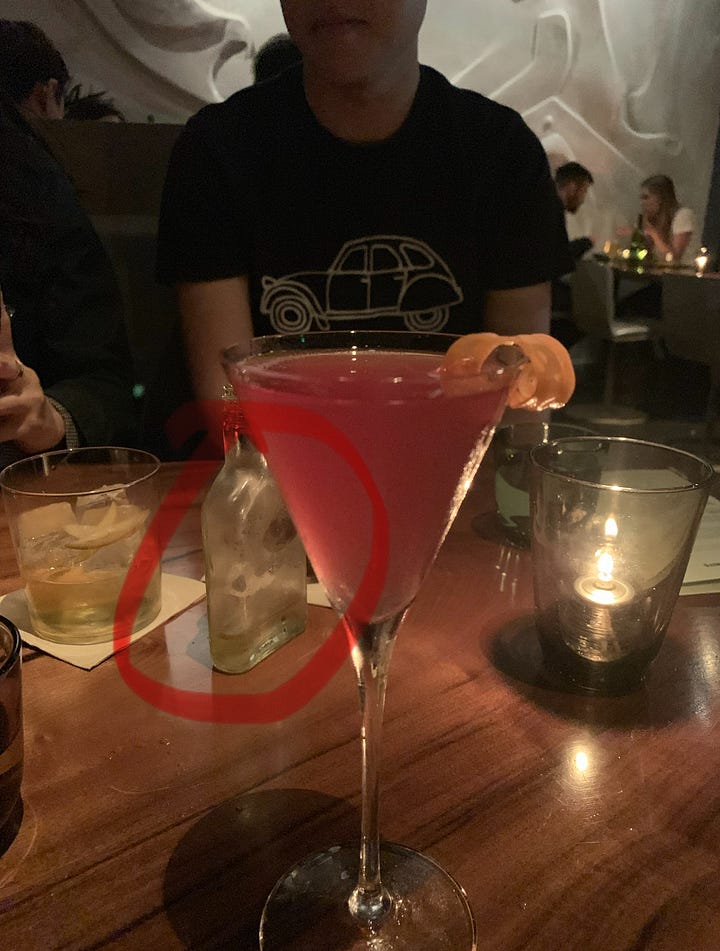 on one of my last nights in the city i had a drink with a friend who recently moved back to san francisco. the pressure was on because he told me to “pick a cool spot” and standards were high after i recently sent him to moongate lounge. i figured we could go to true laurel — it has undeniably good ambience and service, and i’ve talked about the delicious bar nuts in a past letter. true laurel is also special to me because when i lived in potrero hill six years ago it was a frequent night out spot (especially when trick dog was overflowing) and it’s the first place i paid $20 for a cocktail. i feel they’ve become so much more than “the bar to wait at until it’s your time at flour + water” — their cocktail menu has always been fantastic and i’ve exclusively been ordering the into the pines on every visit there. the first time i got it it came in a small glass bottle that used a shaved slice of carrot rolled up as a bottle stopper. i couldn’t stop talking about that detail for days. i am depressed i can’t find a photo because unfortunately that feature of the drink is long gone, but the rest is equally delicious. i order this so blindly i actually don’t know what’s in it, but the menu says it’s “toasted coconut rye, terroir gin, vermouth, maraschino, arak, redwood tips.” i haven’t had the food here in years so i’m not sure if it’s still good, but i remember loving the fondue. i think you need to make a reservation these days to get a table, but i usually successfully score bar seats by being just being nice.